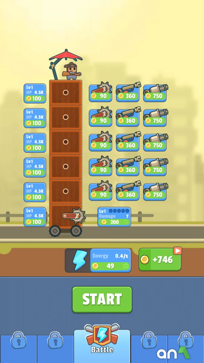 TDS - Tower Destiny Survive (MOD, Unlimited Coins) - game presents a unique combination of construction and dynamic action, where you have to defend your tower against continuous waves of zombies. In this addictive survival idle, your task is to build and fortify your tower, collecting various blocks along the way to create an impenetrable fortress that can withstand the approaching zombie apocalypse. In the game you will face crowds of the dead trying to break in and take over your tower, but don't let them! Arm yourself to the teeth, upgrade your weapons and develop a strategy that will help you not only repel the enemies' attacks, but also continue building your tower. Destroy zombies, pump up your skills and progress through the levels, unlocking access to new weapons, blocks and upgrades that will help you survive in this dangerous world.