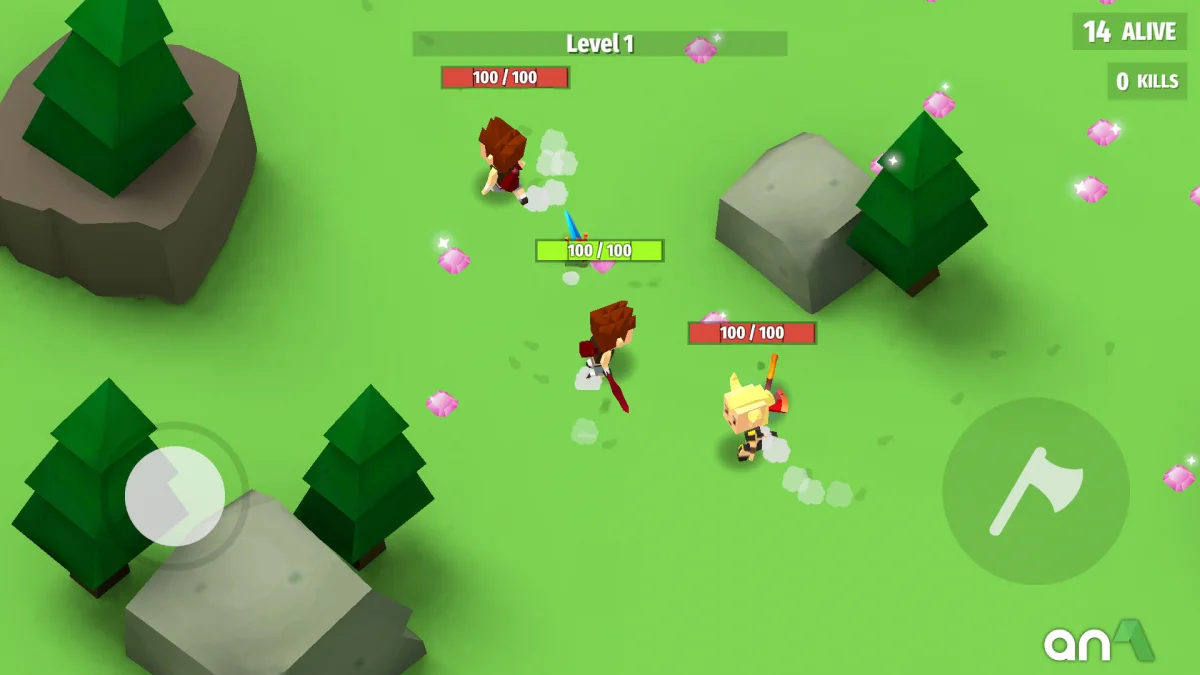 AXES.io (MOD, Unlimited Money) - is a fast-paced arcade battle royal where you fight in survival mode, throwing cold weapons at your opponents to become the last one left in the arena and take the top of the leaderboard. Fast-paced, action-packed, adrenaline-pumping two-minute matches await you, where every skillful hit brings you closer to victory. The game supports both single-player mode for practicing and honing your skills, and online battles against real players from all over the world. Choose from more than 20 unique heroes with individual styles and features, master more than 40 weapons, each with its own characteristics and can be enhanced to gain an advantage in battle. Simple and intuitive controls allow you to instantly get into the game even for beginners, and a rich selection of maps and modes will not let you get bored. AXES.io is the perfect combination of arcade dynamics, battle royale and a fun system of upgrades, where every battle is a challenge, every hit is a step to victory, and every weapon is a chance to change the course of the battle.