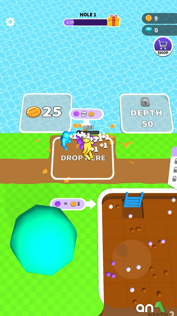 Dig Deep (MOD, Unlimited Coins/Gems) - this is an exciting excavation simulator in which you will embark on a thrilling underground adventure with the goal of getting rich by mining gold, diamonds, and other treasures, hiring workers, expanding your empire, and enjoying relaxing gameplay where every shovel brings you closer to becoming a true diamond magnate. Along the way, you'll find rare discoveries, giant sculptures, exotic pets, and the opportunity to dig to your heart's content as you strive to reach the center of the earth and collect everything you can find in the depths of the planet.