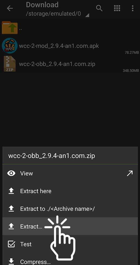 1) Open ZArchiver, give the program all the necessary memory permissions, then navigate to the folder where you downloaded the game and OBB. This is basically the "Download" folder.