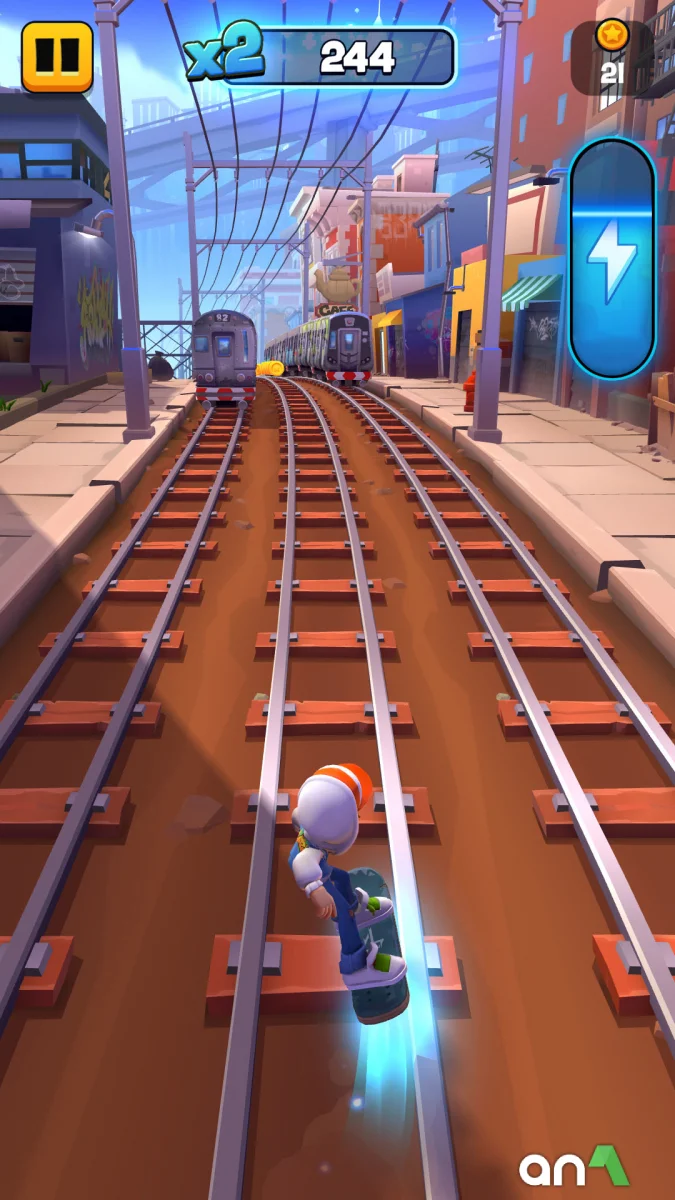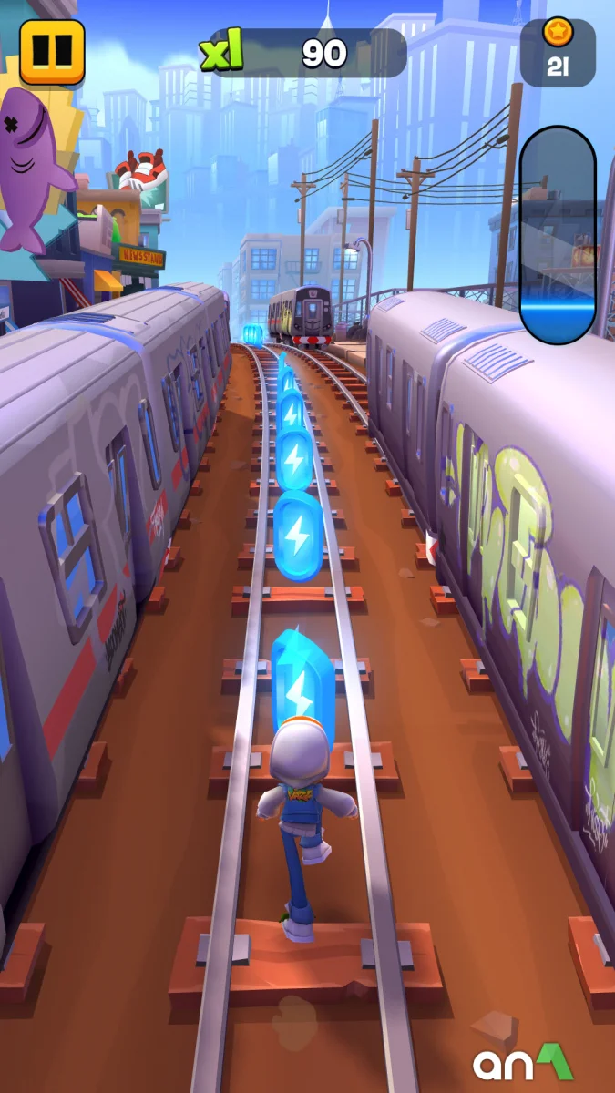 Subway Surfers City (MOD, много монет/ключей) - это увлекательный бесконечный раннер, предлагающий игрокам возможность исследовать новые городские районы, бегая вместе с любимыми персонажами, такими как Джейк, Трикки и Фреш. Игра требует ловкости и быстроты реакции: цель состоит в том, чтобы собирать монеты, избегая при этом многочисленных препятствий. Управление персонажем осуществляется путем проведения пальцем по экрану смартфона, что позволяет двигаться в сторону, прыгать и обходить преграды. Кроме того, в игре появляются специальные способности, которые можно использовать для улучшения результатов. Например, магнит притягивает все монеты вокруг, а кроссовки позволяют высоко подпрыгивать. В определенные моменты доступен бустер, позволяющий передвигаться на скейтборде с максимальной скоростью. В процессе игры в Subway Surfers 2 mod apk вам предстоит убегать от охранника и его пса, которые неустанно преследуют главного героя. Малейшая ошибка может привести к столкновению с препятствием, но есть возможность использовать специальные предметы для перезапуска игры с того же места.