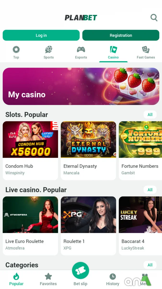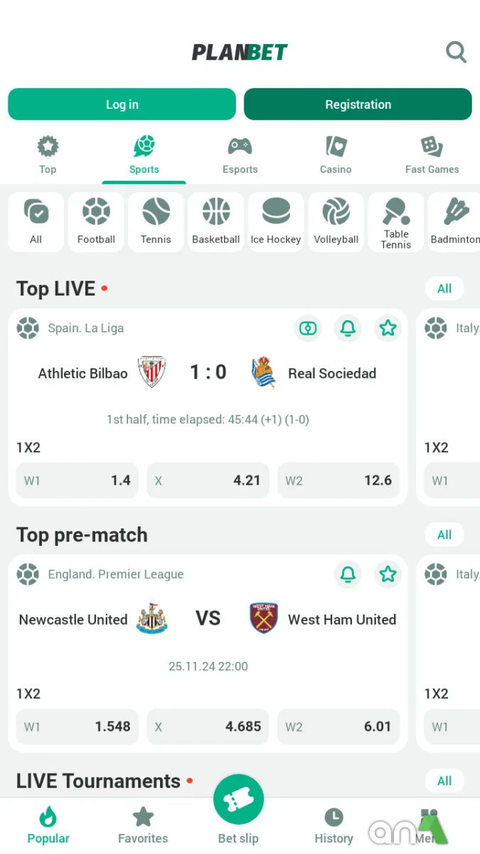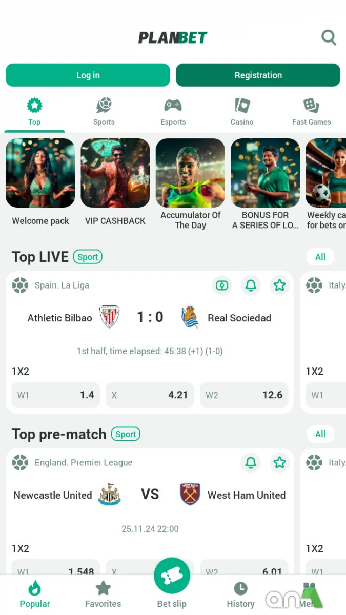 Planbet - is a state-of-the-art mobile sports betting and gambling platform that gives you access to hundreds of events and allows you to enjoy the game anytime, anywhere. The app provides a wide range of sports disciplines, from soccer and basketball to niche sports such as cricket and rowing. You can place bets both before the match starts and in real-time, monitoring the changing odds and using them to your advantage. You can combine bets to maximize your potential winnings and enjoy match broadcasts right in the app. For cybersports fans, there are bets on the most popular disciplines. Planbet features a user-friendly interface that simplifies the betting and gaming process. Intuitive controls allow you to quickly find the desired event or game, and push notifications will help you not to miss favorable changes in odds and important events. The casino section features dozens of popular real-time games, from slots and roulette to blackjack and other card games, creating the atmosphere of a real gambling hall thanks to high-quality graphics and live interaction. The bottom panel provides access to betting providers and partner casinos, allowing you to get all the necessary information about the platform. By downloading Planbet for Android, you will get an easy-to-use tool for entertainment and potential earnings, combining reliability, functionality, and a variety of gaming options. Thanks to the convenient control system and a wide selection of events, each user will be able to find exactly what suits their interests and level of involvement.