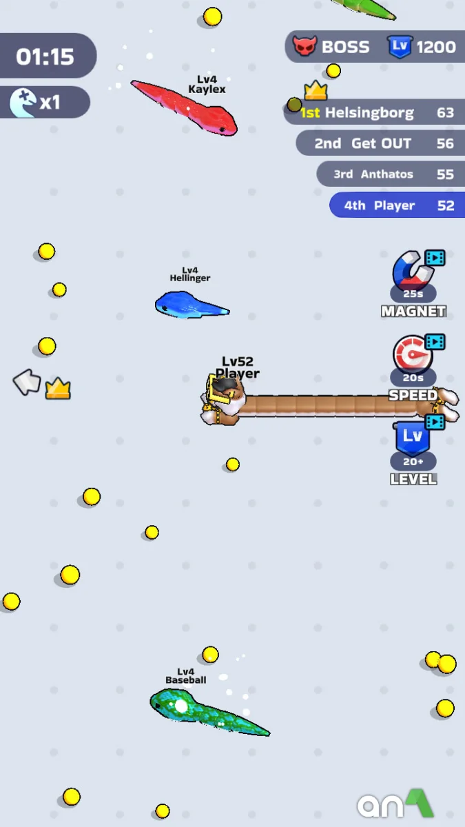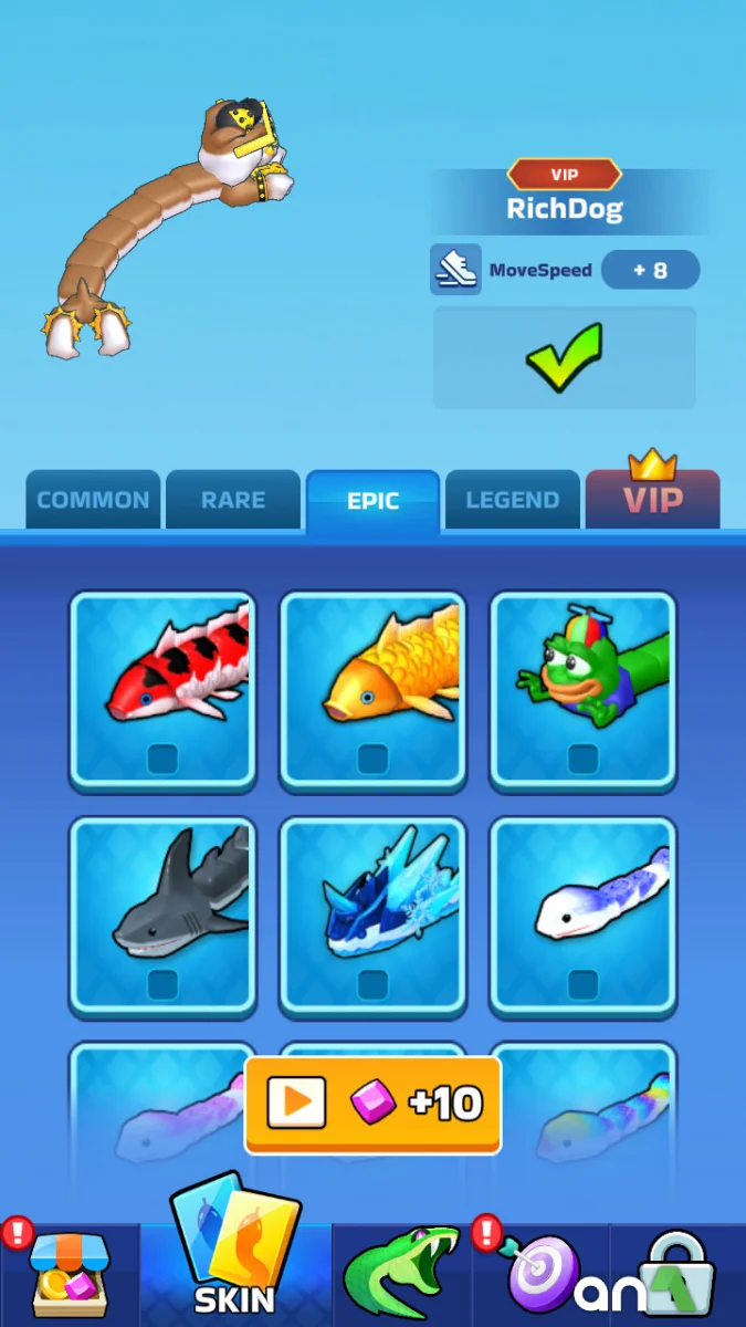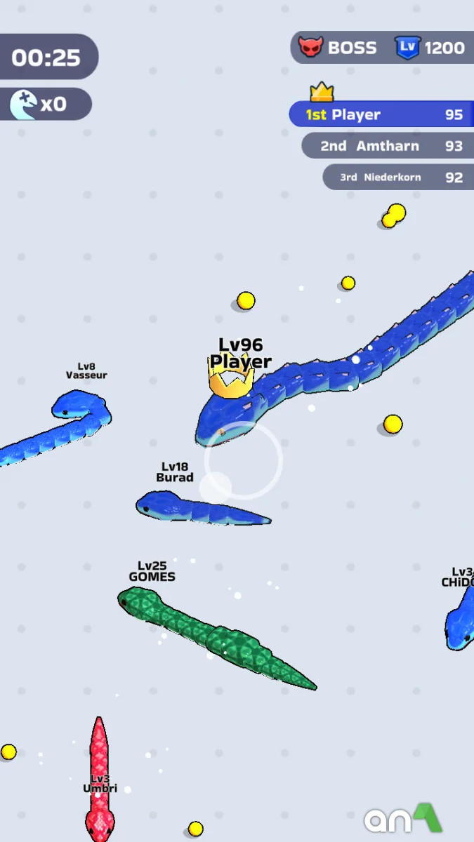 Snake Clash (MOD, Unlimited Money) - is not just another clone of the classic snake, but a dynamic action game where you have to survive, fight and evolve in a world full of dangerous opponents. Start as a small snake, devour prey, devour weak opponents and gradually transform into a huge and unstoppable predator that dominates the arena. Your task is to become the strongest snake by avoiding traps and fights with bigger opponents, but don't forget that every mistake can be fatal. Each level offers fights with unique bosses. Snake Clash combines classic snake gameplay with modern mechanics, adding dynamics, strategy and battle elements.