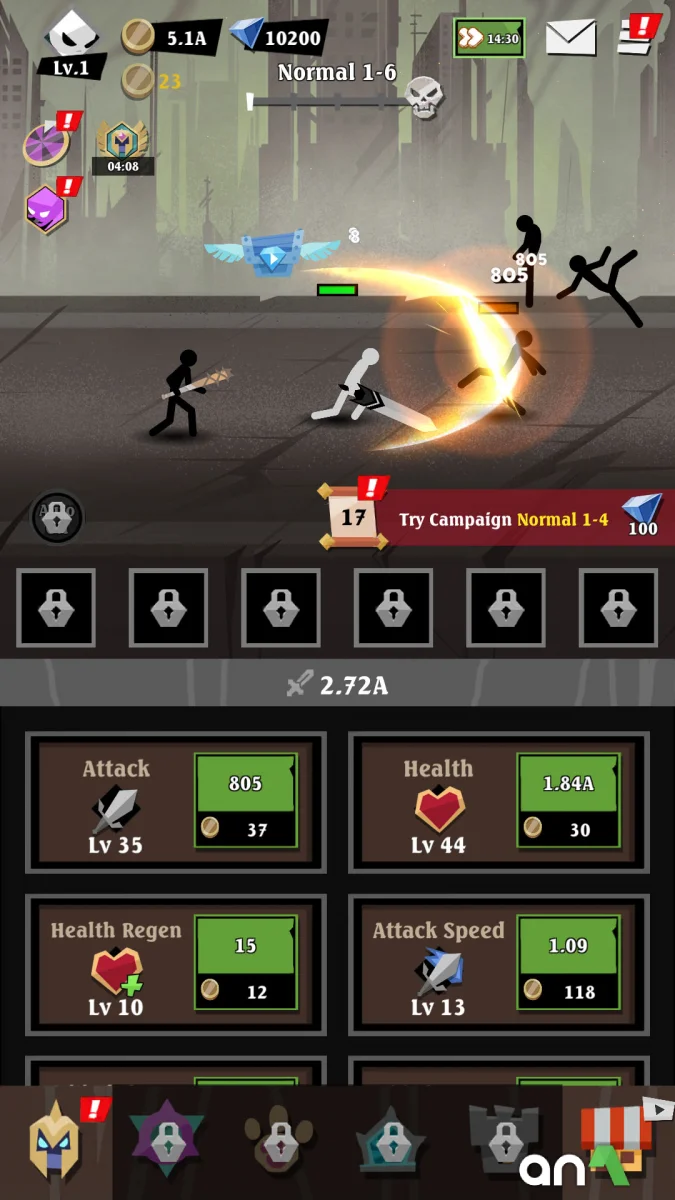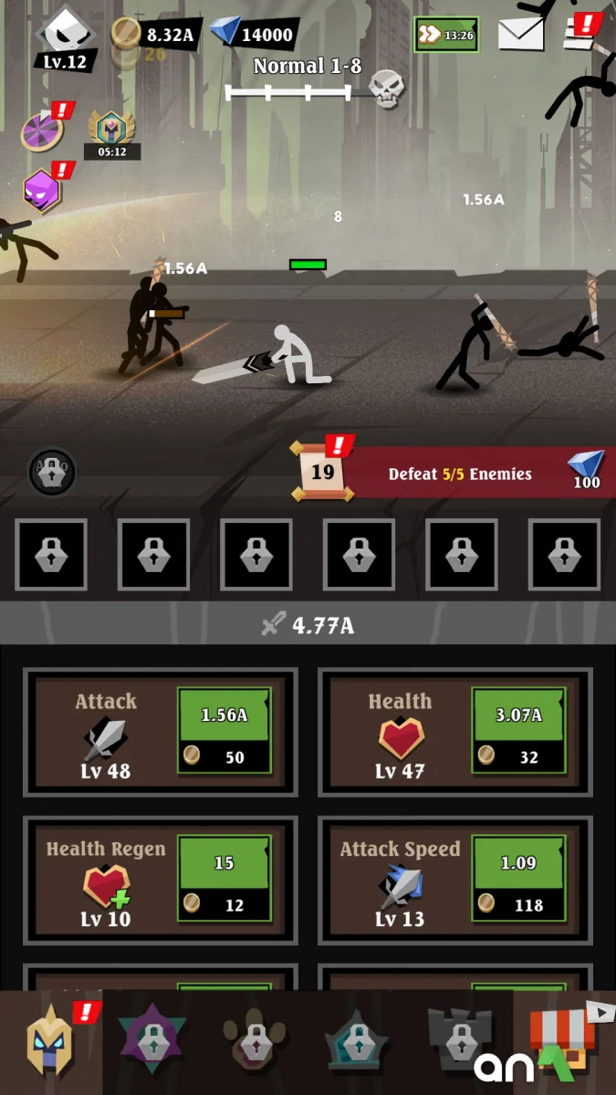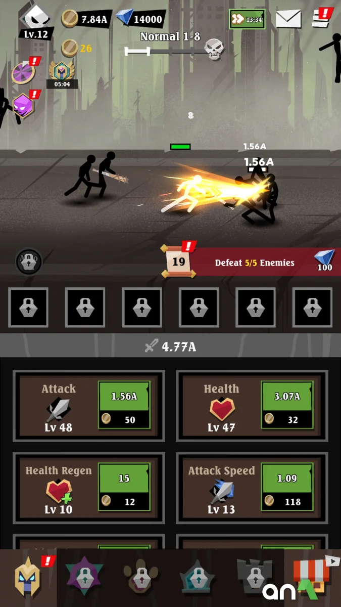 Epic Stickman: Idle RPG War (MOD, Unlimited Money) - is an exciting idle-RPG in which you awaken your inner hero and go to the dark Kingdom of Shadows to fight, level up and become a legend. Here, every hero's step is a battle of strength, and every monster is a new challenge on the path to glory. Choose your battle path: whether you're a mighty warrior, a cunning rogue, a wise mage or an intimidating spellcaster, each class is endowed with unique abilities and play style. Even when you quit the game, your hero continues to fight, earning experience and rewards so you can come back stronger and ready for new challenges. Fight hordes of monsters, explore dark locations, uncover secrets of the past, and battle bosses guarding ancient secrets. Customize your hero's appearance, equip him with the best weapons and armor, develop skills and unlock new powerful abilities to cope with the increasing number of opponents. The game combines exciting action, elements of tactics and endless development, allowing you to rest while your character continues on the path to legend. Rise from the shadows and prove that you are the true hero of this world!