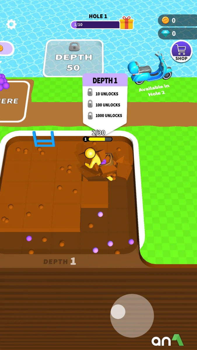 Dig Deep (MOD, Unlimited Coins/Gems) - this is an exciting excavation simulator in which you will embark on a thrilling underground adventure with the goal of getting rich by mining gold, diamonds, and other treasures, hiring workers, expanding your empire, and enjoying relaxing gameplay where every shovel brings you closer to becoming a true diamond magnate. Along the way, you'll find rare discoveries, giant sculptures, exotic pets, and the opportunity to dig to your heart's content as you strive to reach the center of the earth and collect everything you can find in the depths of the planet.