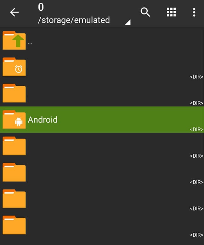 Navigate to the very beginning of the path, and find the "Android" folder, and then click on it.