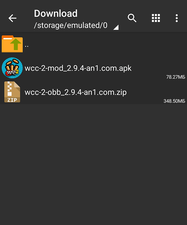 1) Open ZArchiver, give the program all the necessary memory permissions, then navigate to the folder where you downloaded the game and OBB. This is basically the "Download" folder.